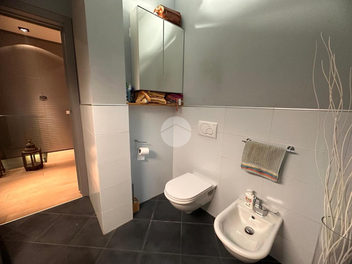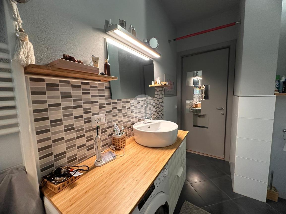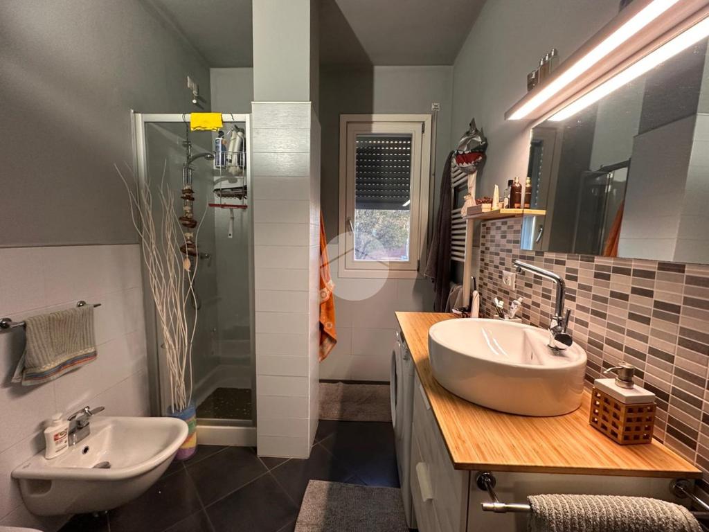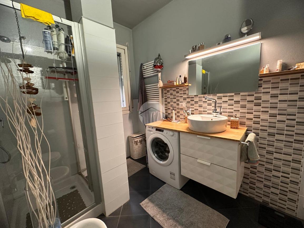 Completa la zona giorno il bagno finestrato con doccia e attacchi per la lavatrice.