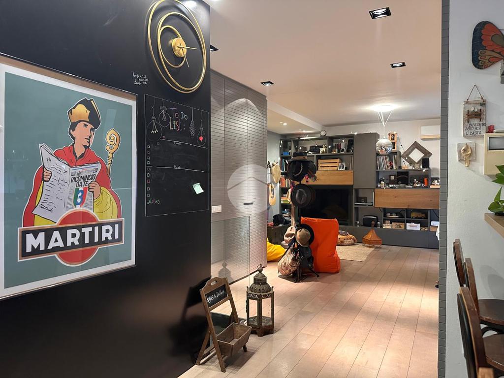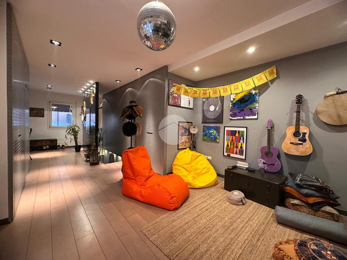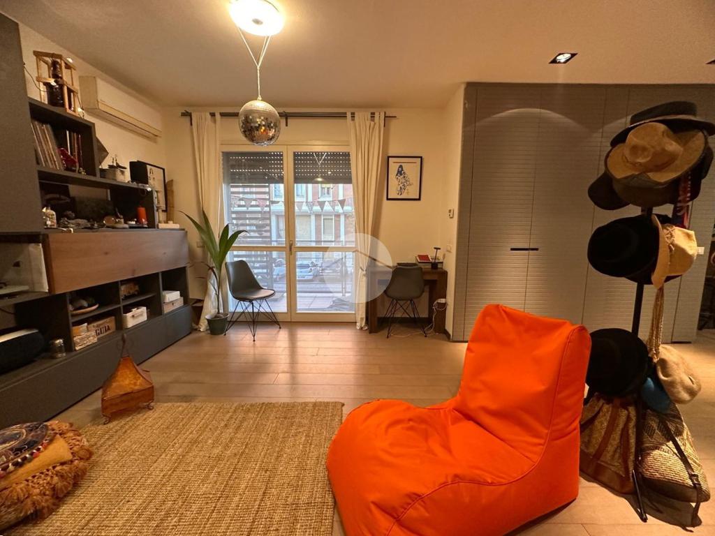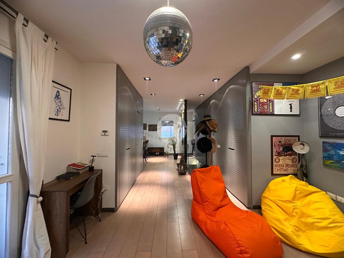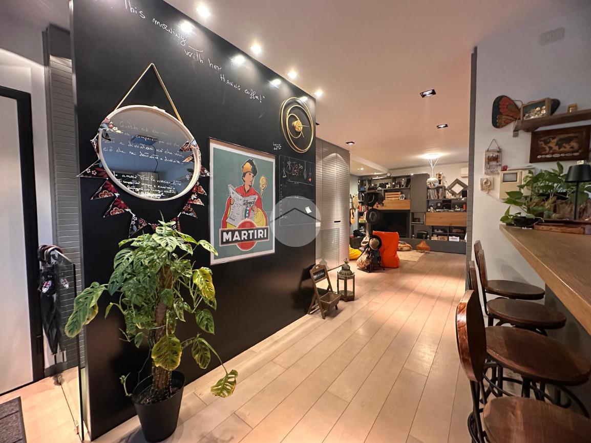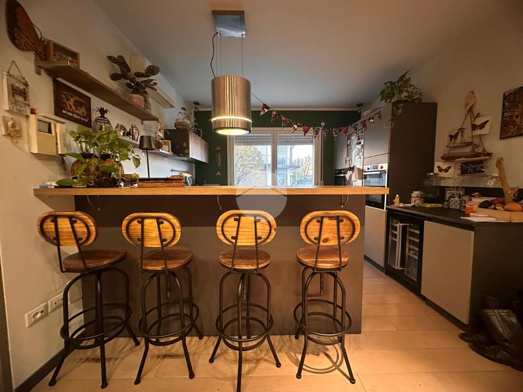 Tramite l'ascensore raggiungiamo il primo piano, dove accediamo tramite la porta blindata nella cucina arredata su misura con piano ad induzione, proseguendo abbiamo a vista il soggiorno con sfogo sul terrazzino esposto a Nord.